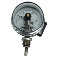 WSSX系列電接點雙金屬溫度計帶有電接觸裝置一即機械電接點。當被測介質(zhì)溫度變化時,自由端上的細軸及轉(zhuǎn)向傳動機構帶動指針及動觸點轉(zhuǎn)動,在標度盤上指示出溫度的變化值,當其與定觸點(上、下限定觸點)接觸或斷開時的瞬時,使電路系統(tǒng)中的繼電器及接觸器動作,以達到自動控制和報警目的,應符合JB/T8803 1998標。