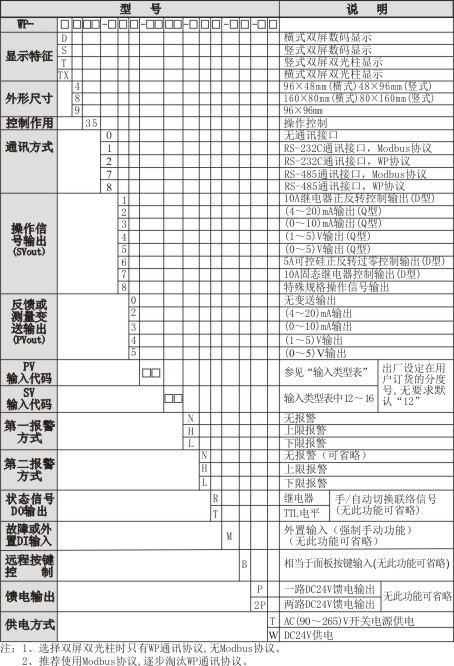 因現(xiàn)場(chǎng)控制系統(tǒng)對(duì)智能操作器各功能的需求不同,以及儀表安裝尺寸和接線端子數(shù)量的限制,以上接線圖中有出現(xiàn)同一個(gè)端子標(biāo)有兩種或三種不同功能,如接線圖(一)中、7號(hào)、8號(hào)端子可定義為狀態(tài)信號(hào)輸出DO(手動(dòng)閉合/自動(dòng)斷開)和報(bào)警輸出ALM,儀表出廠時(shí)標(biāo)定為用戶要求的功能,出廠后不可更改。以上各接線圖中所標(biāo)定的功能為智能操作器常規(guī)儀表,否則為特規(guī)表,雙數(shù)碼加雙光柱顯示僅限于160X80、80X160的外形尺寸,上述如有不用的功能可省略,特