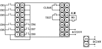 接點式閉路報警,DC24V饋電輸出,DC24V供電,發(fā)光管式指示。 |