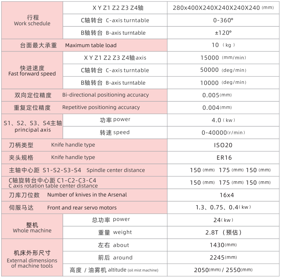 采用四Z雕刻軸、四C軸轉臺,生產效 率一臺頂四臺;滾排式刀庫共計64把 刀;操作簡單方便五軸立體空間雕 刻;滿足各種弧度擺動類產品需求。