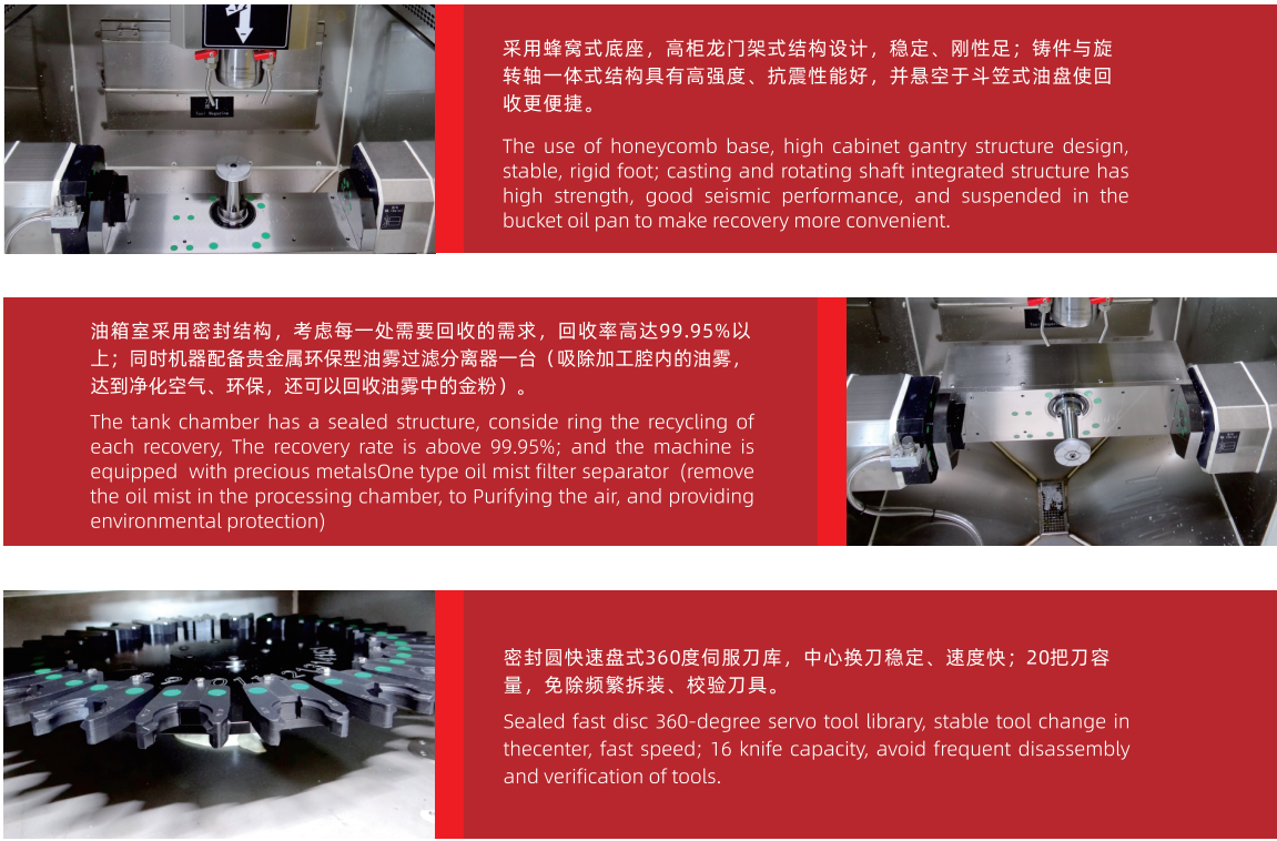 五軸立體空間雕刻;滿足各種弧度擺動類產品需求。
